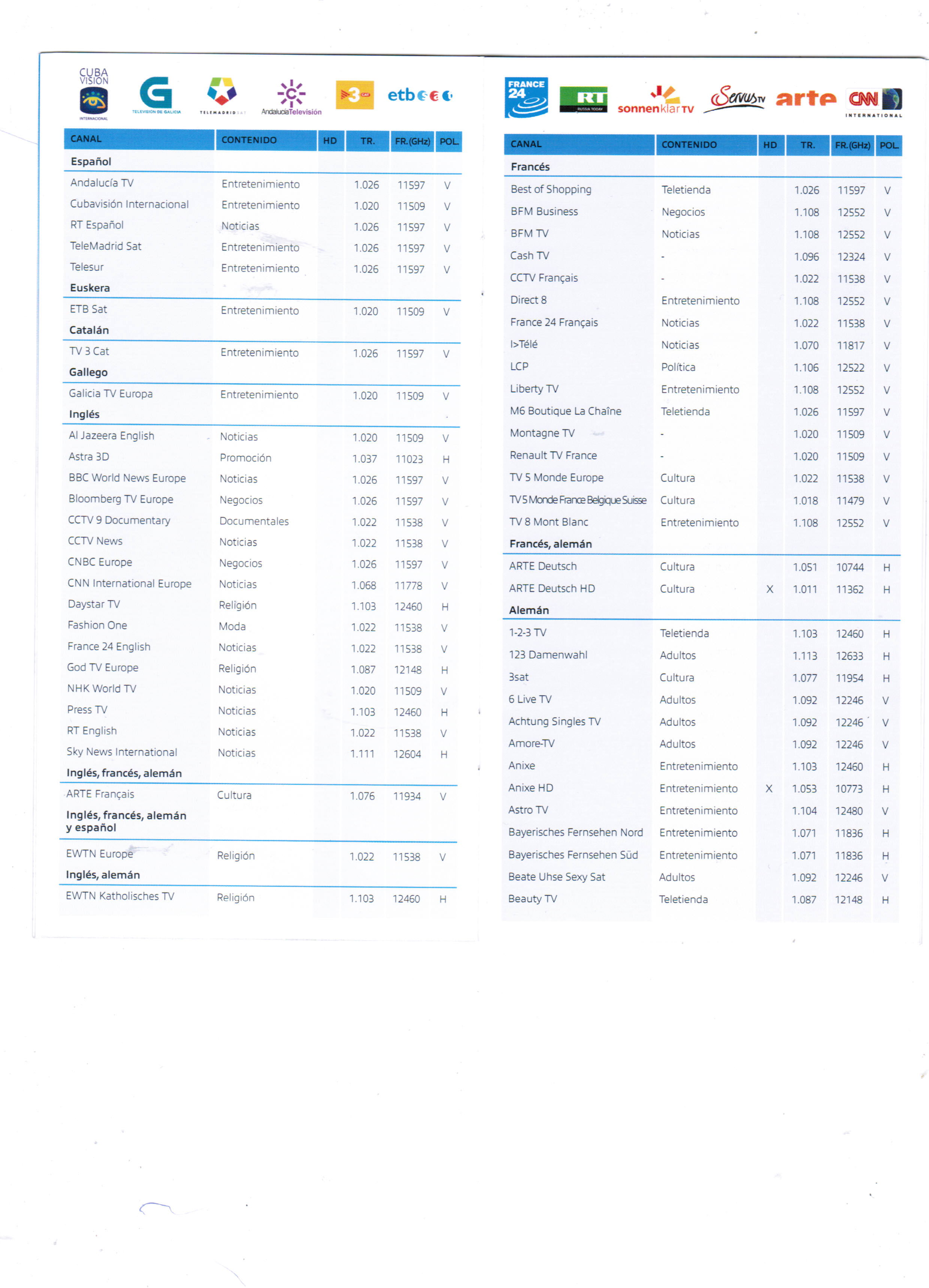 por si a alguien le puede interesar, la parabólica comunitaria está orientada al Astra y estos son los canales que se pueden sintonizar.