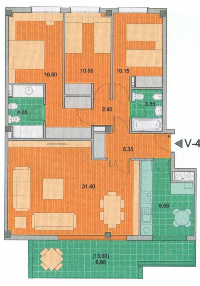 3 dorm. 2 baños.