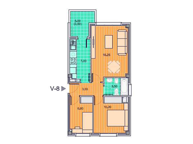 2 dorm. 1 baño.