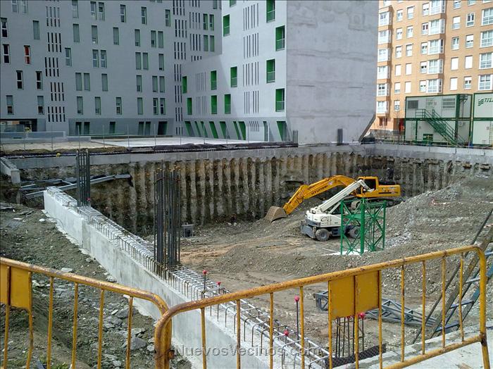 Anoche nos pasamos mi novia y yo por el terreno y ya hay 6 casetas de obra, sigue la misma excavadora y los 2 laterales en los que van los pisos tienen ya una excavación de unos 3 metros...
