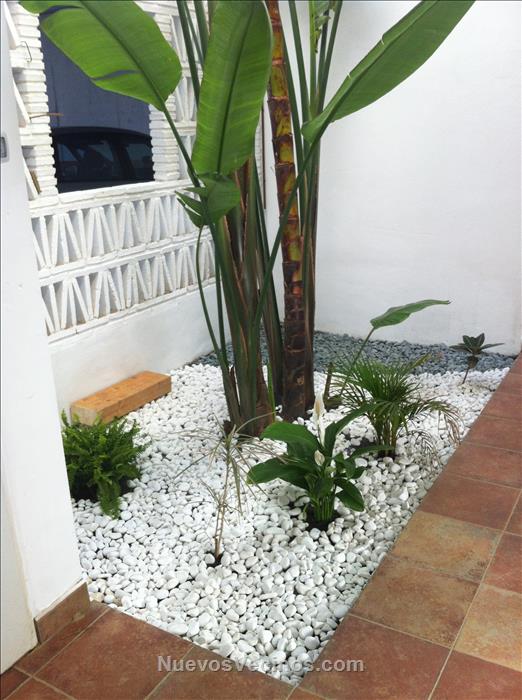 PINTADO DE BAJOS , COLOCACION DE TELA ANTIHIERBA , COLOCACION DE CANTO RODADOS Y DOS PLANTAS .