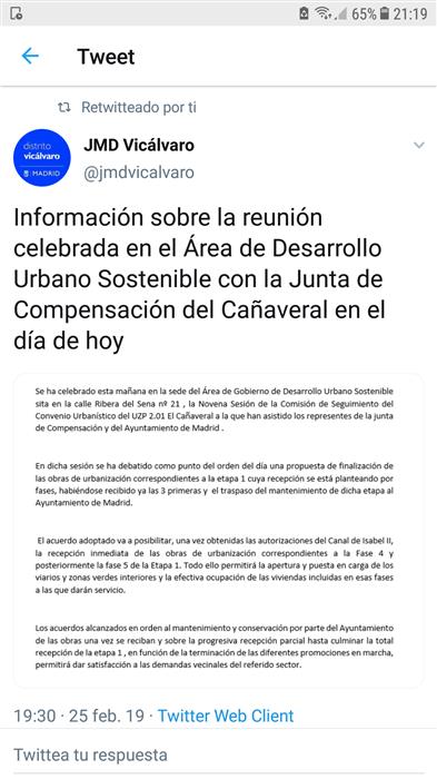 La Junta de Compensación, que a nadie se le olvide, es una empresa. Y lo que quiere es ganar dinero. Y cuanto más, mejor. No les va hacer daño que la gente vaya a las oficinas suyas. Otra cosa será manifestarse en la entrada de las casetas y sus futuros compradores de suelo y viviendas, vean los problemas que pueden tener. Pero la clave está en que el Ayuntamiento desbloquee esto. No puede ser que vayan abriendo 4 calles y dentro de 5 meses otras 4.... Eso lo único que hace, es que cada promoción que esté para entregar se coma medio año de retraso. Esto es España. Los vecinos que ya tienen sus viviendas y calles decepcionada no van a manifestarse. Los que le quedan meses o años tampoco porque esperan que cuando llegue su momento, ya se habrá solucionado, y ya solo quedan los que están con el agua al cuello que tienen sus casas y necesitan que les abran sus calles.