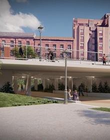Si el problema es que no quieren soterrar calles ,que conecten las distintas zonas con pasarelas, eco-puentes pequeños y túneles peatonales anchos. Y en un futuro, si fuera posible o necesario, dejar acceso solo a servicios y transporte público.