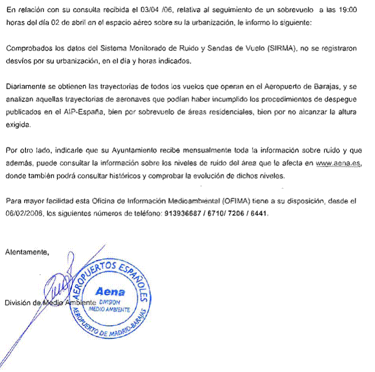 Carta sobre sobrevuelo