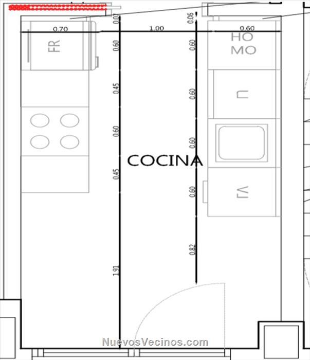 - Puerta corredera en la cocina.