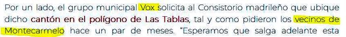 Lo que pretenden estos CARADURAS de la AAVV es moverla apenas 100 m y crear junto a los cuarteles un MEGA-CANTöN que de servicio no sólo a nosotros, sino también a Montecarmelo, Tres Olivos y Arroyo del Fresno. Es decír, quieren endosarnos las basuras de TODOS los PAUs del noroeste y con dos... lo disfrazan de "masivo consenso vecinal".