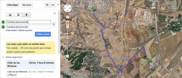 Si, tanto si cruzas por el puente sobre la M-50 que hay si sigues todo recto, como si justo antes del puente, vas por el sendero que sale hacia la derecha, cuesta abajo hasta casi Berrocales, donde hay otro puente sobre la M-50. Ambos caminos te llevan al parque corredor. De tiempo, ni idea, yo lo he hecho en bici y se te van fácilmente 20 minutos, así que andando imagino que andará sobre una hora.