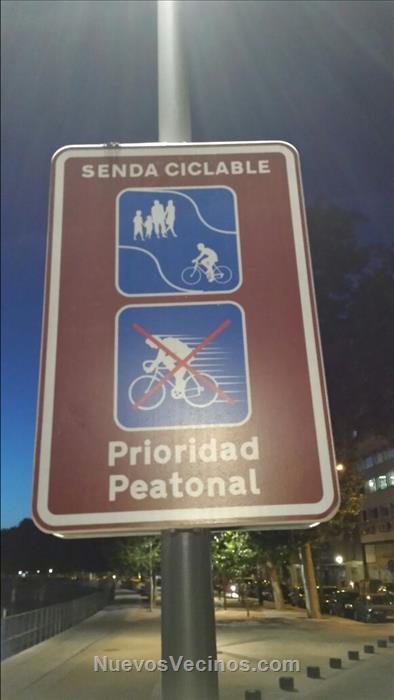 Hay una palabra que suele faltar entre las personas que es convivir. La única señalización que tiene el carril bici, es que esta pintado de azul, nada mas, e incluso esta en algunas zonas que hace de acera, por lo que seguramente veras que hay poquisima gente que lo utiliza, prefiriendo la gente salir al campo o circular por la avenida de lo hoyos (avenida amplia y sin tráfico).