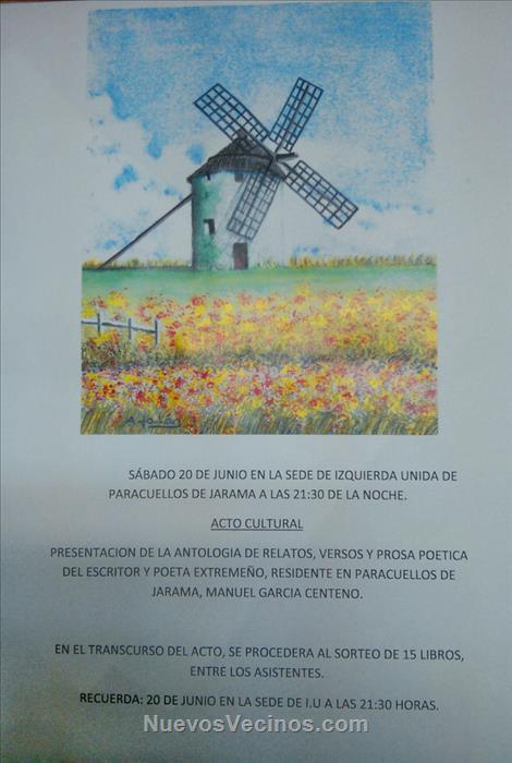 Este sábado día 20, a las 21,30, tendrá lugar en la sede de IU Paracuellos Belvis de Jarama el acto de presentación de la Antología de obras de Manuel García Centeno.
