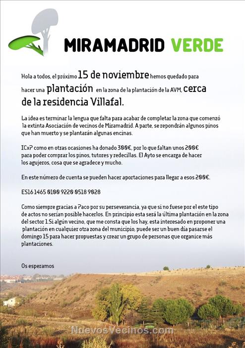 Buenos días, el próximo 15 de noviembre hemos quedado para hacer una plantación en la zona de la plantación de la AVM, cerca de la residencia Villafal.