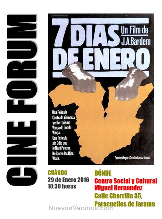 El cinefórum tendrá lugar el día 26 de enero a las 18:30 horas en el Centro Social y Cultural Miguel Hernández, Calle del Chorrillo Alta 35.