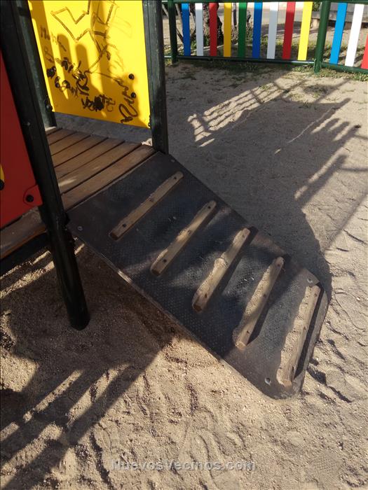 Tengo niños en edad de ir al parque y la verdad es que lo que adolece este pueblo es de variedad en los mismos, son todos iguales. Los de la zona donde vivo, el sector 2, todos tienen un tobogán con una casita encima a la que se accede por una escalera vertical con listones a modo de peldaños. Un juego formado por un muelle para subirse y balancearse, columpios, con cadenas y una tabla donde sentarse. No lo de los de tipo “cazoleta” para poder subir a un niño sin peligro de que se despeñe hacia adelante o hacia atrás.