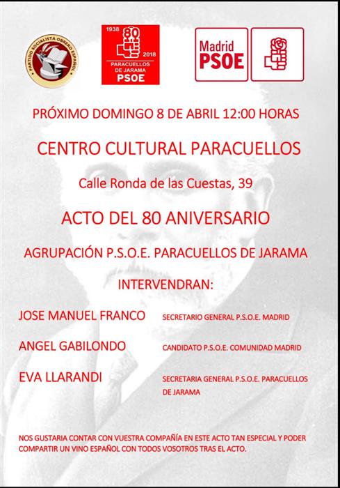 Acto del 80 Aniversario Agrupacion P.S.O.E, Paracuellos de Jarama