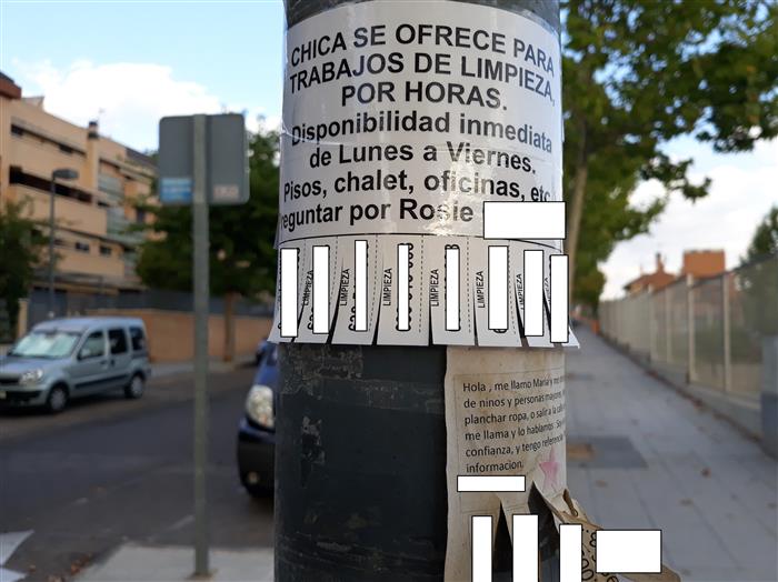 Vuelta a la actividad diaria de Septiembre y otra campaña de “Chica se ofrece...”. De nuevo la invasión a modo de spam de todas y cada una de las calles, parques, zonas comunes… de la urbanización, a razón de dos carteles por farola, sin dejar de apoderarse de ni una sola.