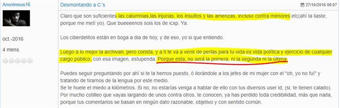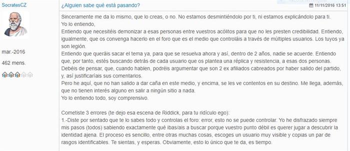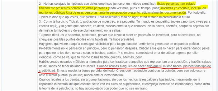 Ahora, que sería impagable ver el careto del juez intentando entender "que un multinick, a la sazón Javier García o, en su defecto, Jorge "el feo", ambos dos esbirros de ICxP, mediaron inteligencia para desplegar un ejército de usuarios con el único propósito de menoscabar la imagen pública de mi patrocinada, inequívoca promesa a la competición política local, que por su valía y formación únicamente podía ser domeñada a base de injurias, acoso y hostigamiento, mala puñalá les dieran, que hay que ver lo que vale esta chica..."