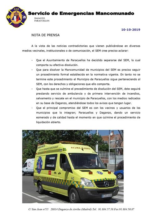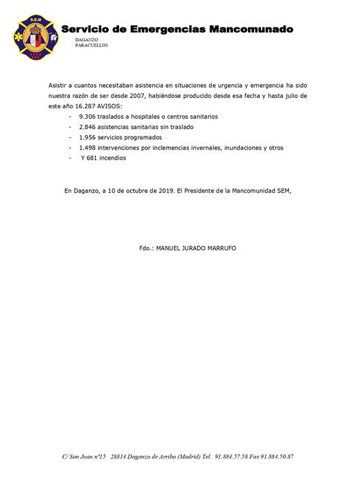 SERVICIO DE EMERGENCIAS MANCOMUNADO DE DAGANZO, FRESNO Y PARACUELLOS ORGANIZACIÓN Y FUNCIONAMIENTO