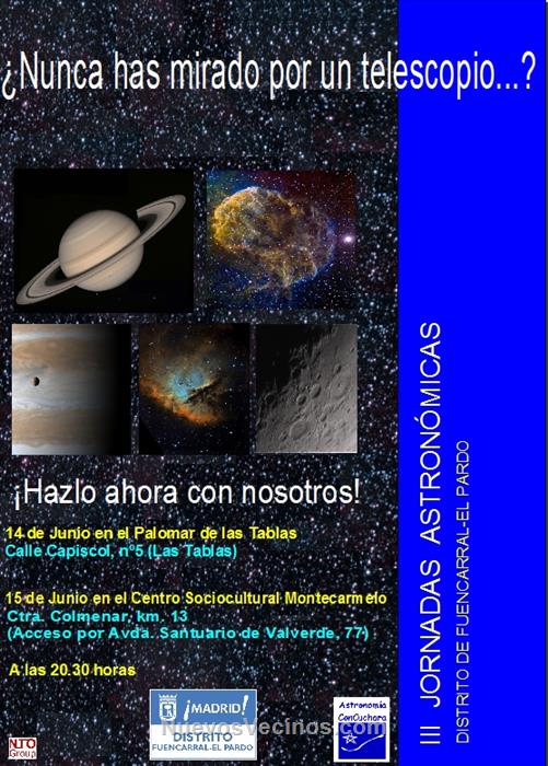 Por otro lado, aquí dejo la noticia sobre las jornadas astronómicas, que se harán en Montecarmelo y en Las Tablas.
