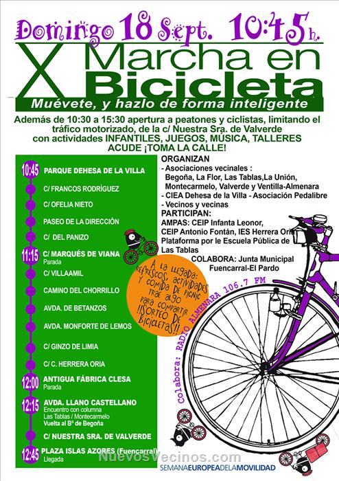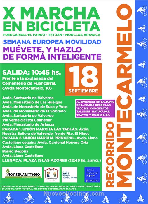 Informaros que el domingo 18 de septiembre se celebrará la X Marcha Ciclista de Fuencarral-El Pardo, Tetuán y Moncloa-Aravaca que se inscribe dentro de la Semana Europea de Movilidad 2016.