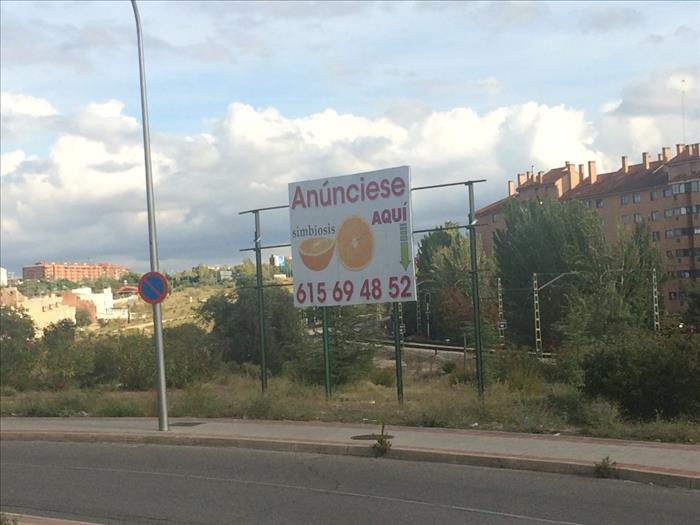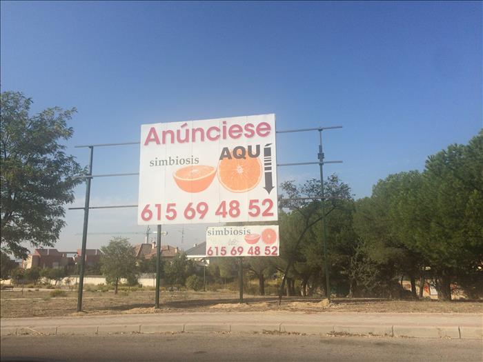 Hace más o menos un mes, un sábado por la mañana, mientras bajaba la cuesta hacía el metro de Paco de Lucía observé a unos operarios que, en el carril de subida, estaban instalando uno de estos carteles, también de la empresa Simbiosis. Llamé a la Policía Municipal, seguí mi camino, y cuando volví a pasar por la zona más de una hora después observé que había llegado la Policía, que habían parado los trabajos (aunque ya estaba bastante avanzada la instalación del soporte) y que los agentes estaban revisando algún tipo de documentación. La estructura quedó inacabada durante algunos días, pero pronto concluyeron el trabajo y el nuevo cartel lleva semanas instalado.