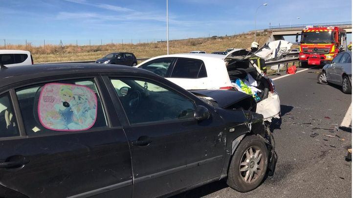 Han tenido que intervenir Bomberos de la Comunidad y el Summa 112, que ha atendido a cinco menores que viajaban en distintos coches, todos con policontusiones.