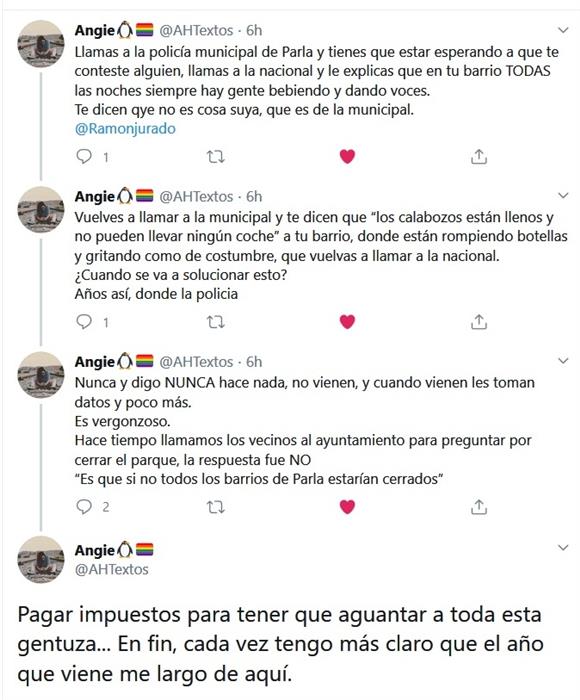 Para hablar mal de Parla, no nos pongas un trozo de una conversación de una persona que no conocemos, y que corresponde a una queja que puede ser de cualquier parte!!