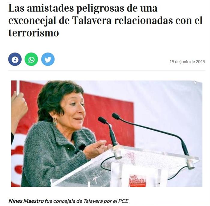 “Maestro ha mostrado públicamente en diversas ocasiones su cercanía a la izquierda abertzale, pidiendo el voto para el Partido Comunista de las Tierras Vascas (EHAK)1? o participando en actos de Batasuna.2? En las elecciones al Parlamento Europeo de 2009 fue candidata en las listas de Iniciativa Internacionalista - La Solidaridad entre los Pueblos.