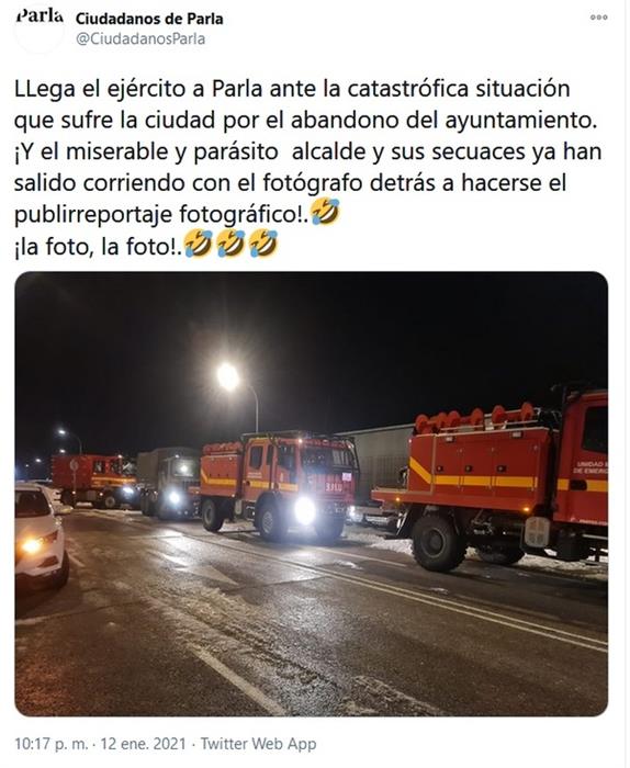 El ejercito lo unico que ha hecho en Parla es despejar el camino al hospital, que es el cometido que tienen en todos los municipios.