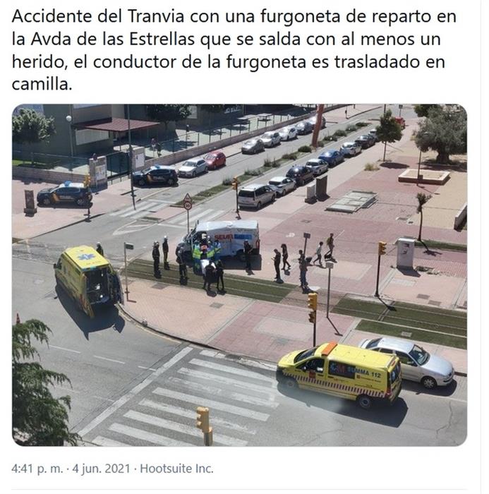 Pues yo lo ví de lleno, y realmente no sé que la sucedió a la repartidora de SEUR... Se quedó atascada en todo el giro, se saltó el semáforo y por más que pitó el tranvía se quedó parada hasta que la dio de lleno en todo el costado lateral del conductor.