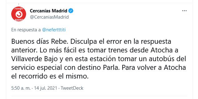 Atocha – Parla: la nueva de Indiana Jones": despiporre con las indicaciones de Cercanías Madrid a una usuaria