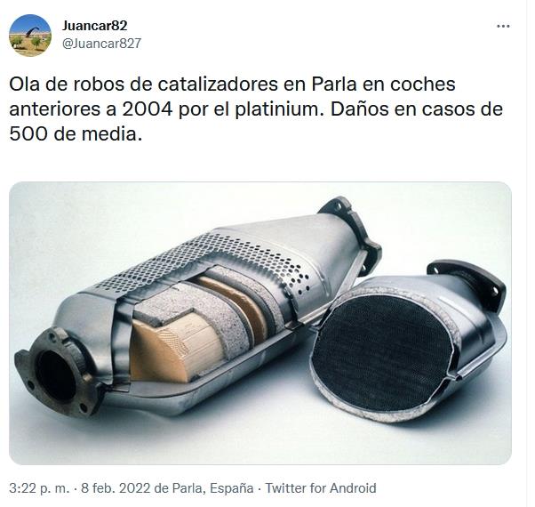 Denuncian una oleada de robos en Parla de catalizadores en coches anteriores al año 2004 para robar las partículas de platino que rondan un gramo de peso en cada catalizador.