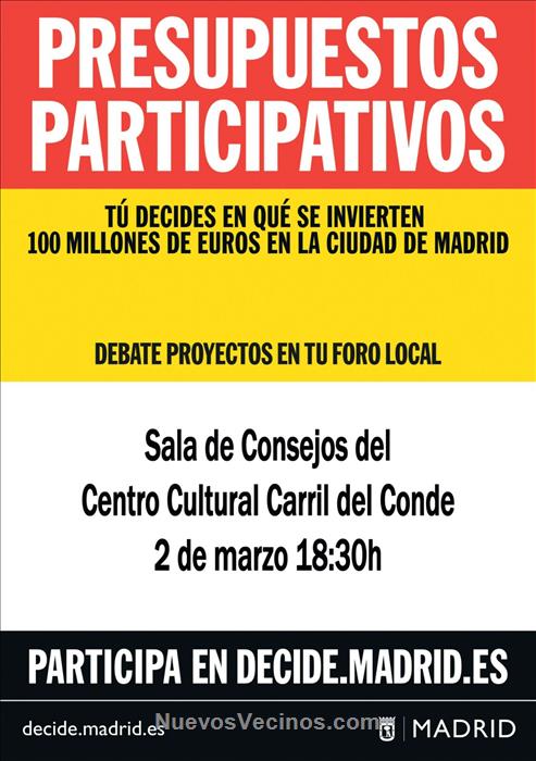 Lo que leéis. La Junta Municipal de Distrito ha convocado por sorpresa una reunión de los Foros Locales de Hotaleza (esta vez en el C.C. Carril del Conde, 18:30) en la que se debatirán y se incorporarán las propuestas presenciales para los Presupuestos Participativos de 2018. Es de máxima importancia ir. Tanto si estás apuntado en los Foros Locales como si no, puedes acudir. Con tan poco margen de tiempo (intencionado?) todo el que pueda que haga el esfuerzo de presentarse. Seguro que otros lo saben desde hace días.