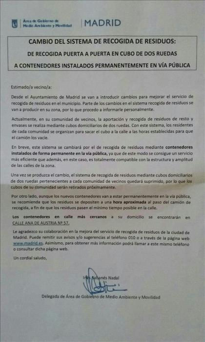 Además de si lo pensáis dos segundos, esos contenedores se distribuyen según el número de población. Si hay mucha población en poco espacio, como ocurre en valdebebas, que fácilmente un lado de cada manzana agrupa a 100 viviendas, prácticamente van a poner un contenedor por cada lado de una manzana. Así que no, no va a s a tener que recorrer 200 metros... :/