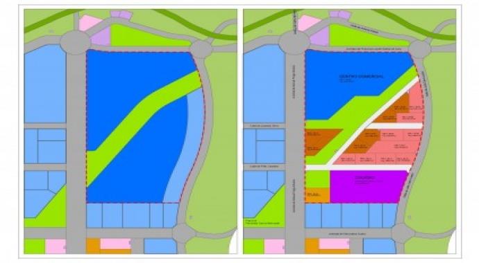 A la izquierda la reparcelación actual, a la derecha la declarada nula. Ese tridente entiendo que hay que quitarlo y quizás están comenzando a hacerlo.