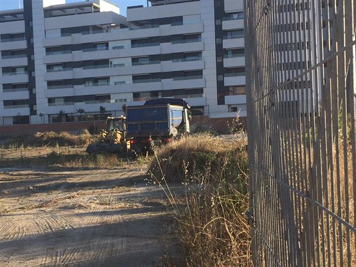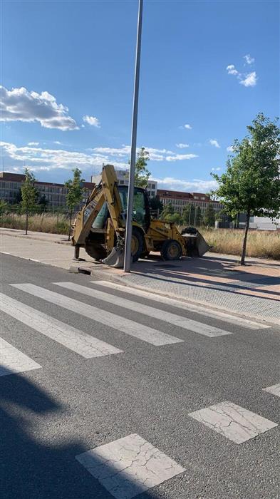 Excavadora dentro de parcela