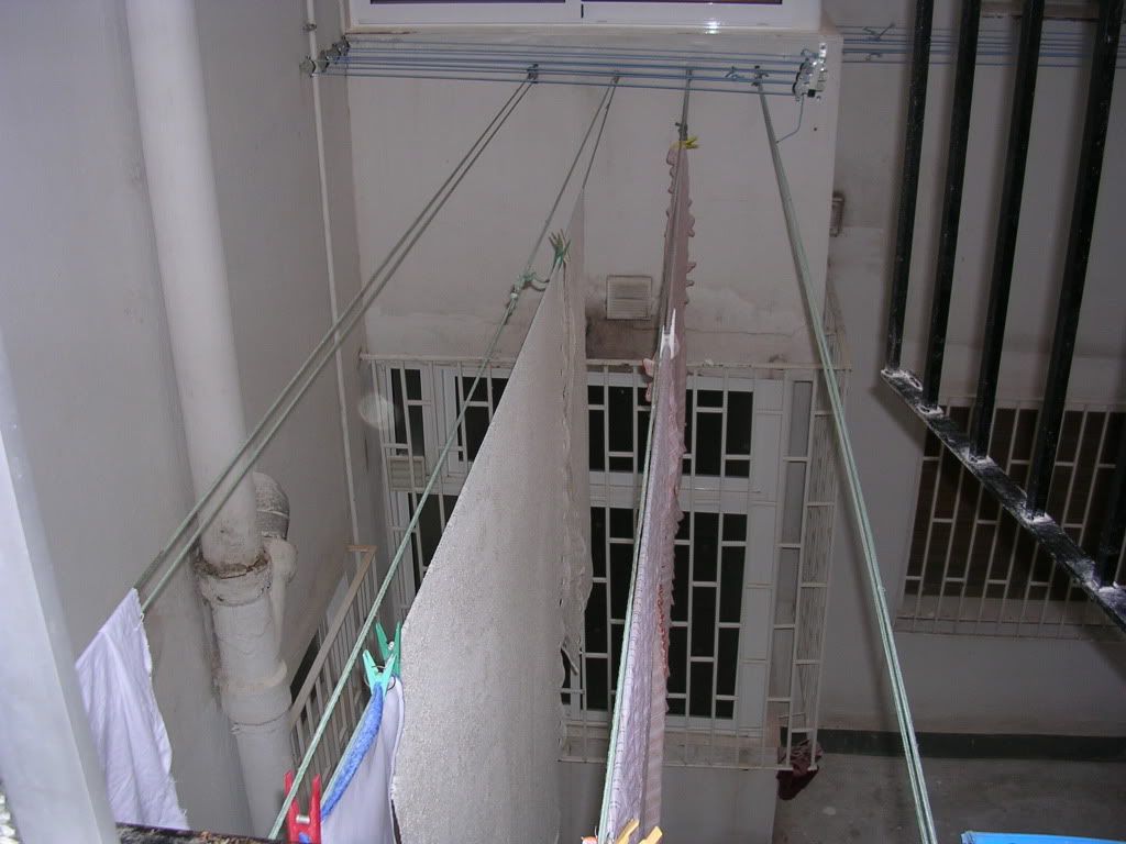 Os adjunto unas fotos. Mi tendero es elque cruza de casa a casa, y el suyo el de las cuerdas azules, que ha colocado sobre el mio.