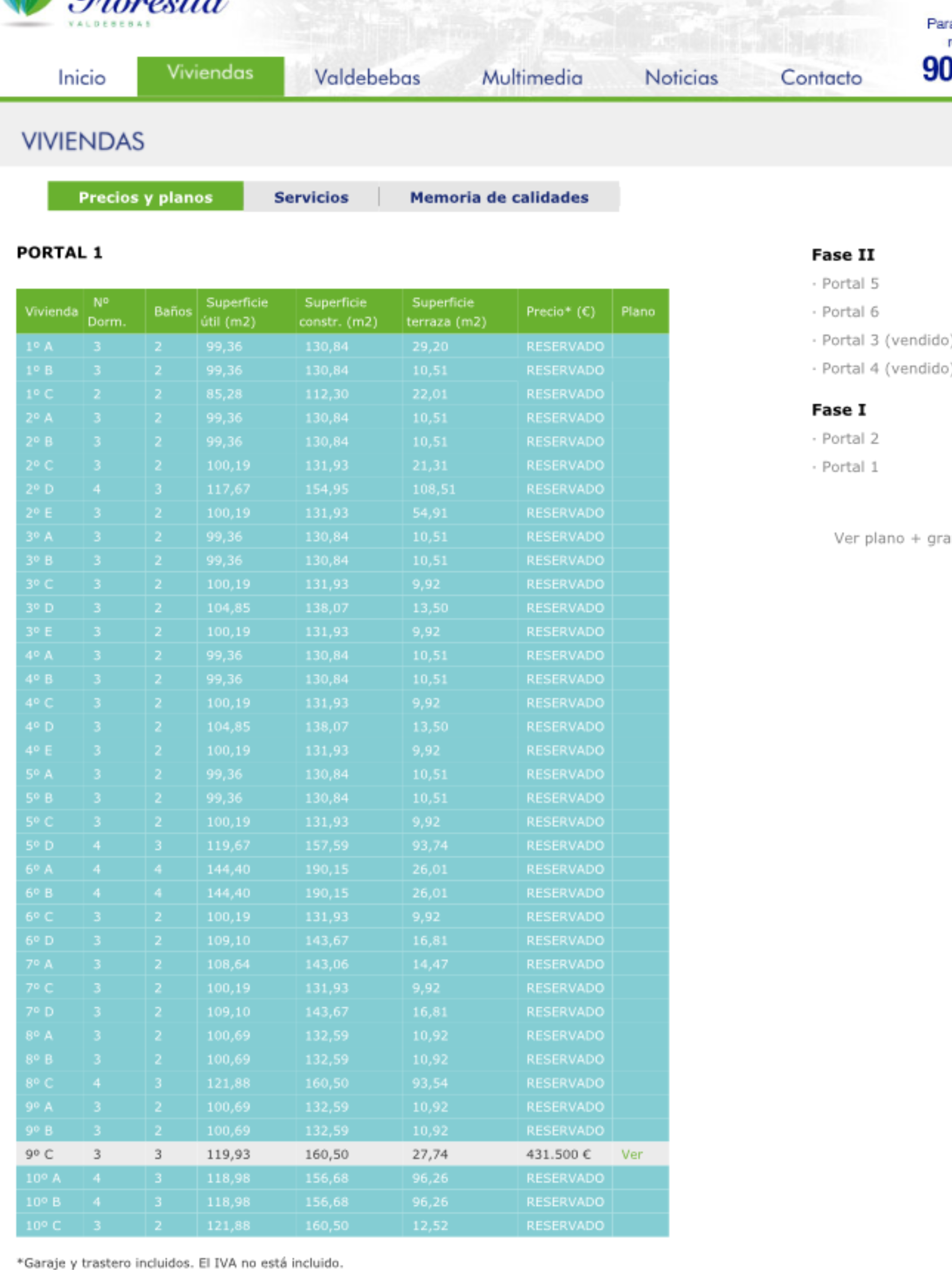 Viviendas portal 1, superficies