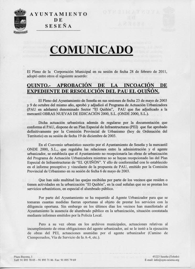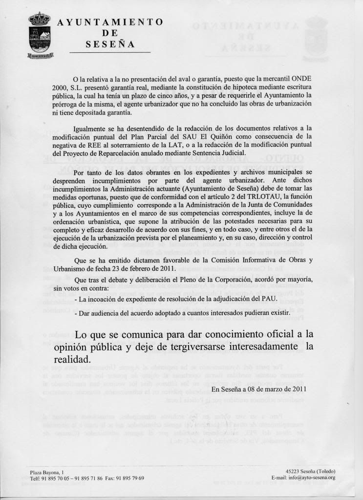 NO HUBIERA SIDO LO MAS LOGICO, QUE TODO EL PLENO DEL AYUNTAMIENTO HUBIERA ESCUCHADO AL PROMOTOR DE VIVA VOZ ANTES DE PROCEDER A LA RESOLUCION DEL CONTRATO O CONVENIO O LO QUE QUIERAN QUE SE HAYA FIRMADO?????