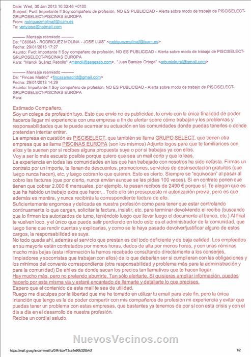 No son solo esta comunidad, hay más comunidades con los mismos problemas o muy parecidos, si seguís el blog, aquí, Rivas, alguien ha comentado de sabadel (creo)...... ¿cómo se pueden cometer los mismos errores, demasiada casualidad no?
