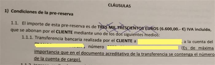 Cuando aceptamos meternos en la reserva del piso a finales de febrero este año, nos dieron un modelo del documento de reserva para que lo revisásemos antes de firmar. En el modelo había una prequeña discrepancia pues ponía 6.600 € pero en texto ponía TRES MIL TRESCIENTOS EUROS.