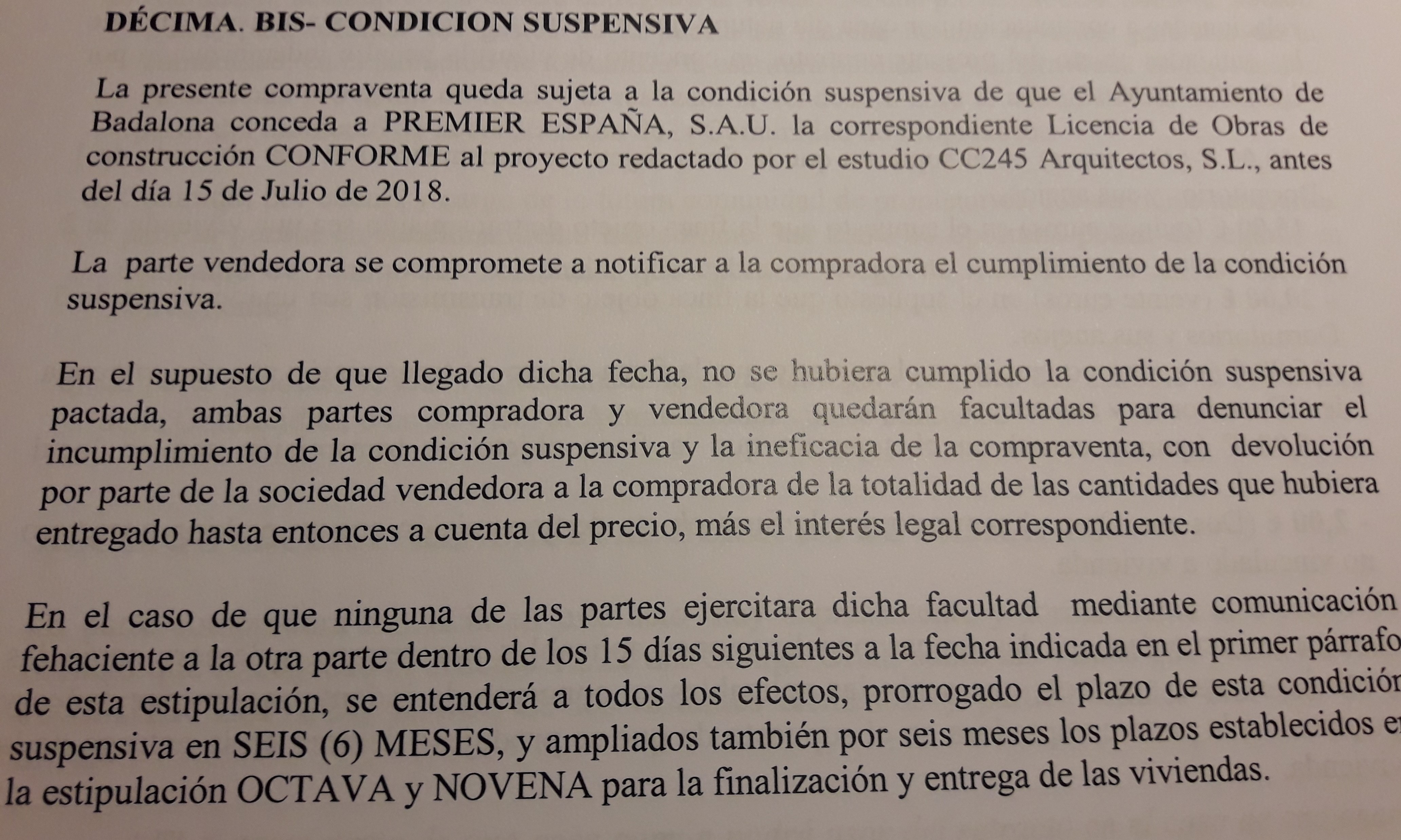 Condicion Suspensiva del premiso de obras 15/7/18