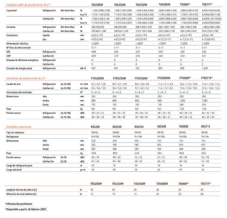 Caracteristicas tecnicas Aire Acondicionado