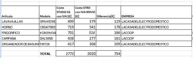 Sí hay alguna cosa que no me termina de encajar...por ejemplo nos cobran por instalar los electrodomésticos aunque se los compremos a ellos...por ejemplo un lavavajillas integrado. A mi eso me chirría...nunca me había encontrado esto. Siempre había sido...si nos compras el electrodoméstico la instalación está incluida si lo compras a otro o ya lo tienes y quieres que te lo instalemos sí te cobramos….lo que sí me parece lógico, lo de las cocinas de ahora no me lo parece.