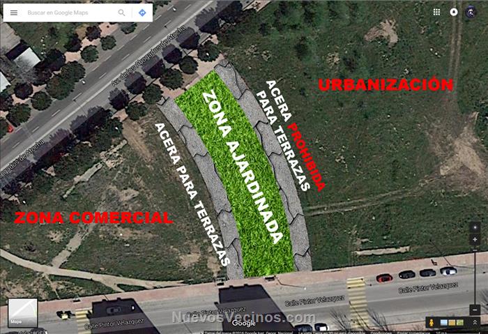 Él me dijo que de ser así la zona de las terrazas se quedaría en la acera de su lado y nunca podrían poner mesas y terrazas en zonas ajardinadas, es decir, la parte que separa las dos aceras.