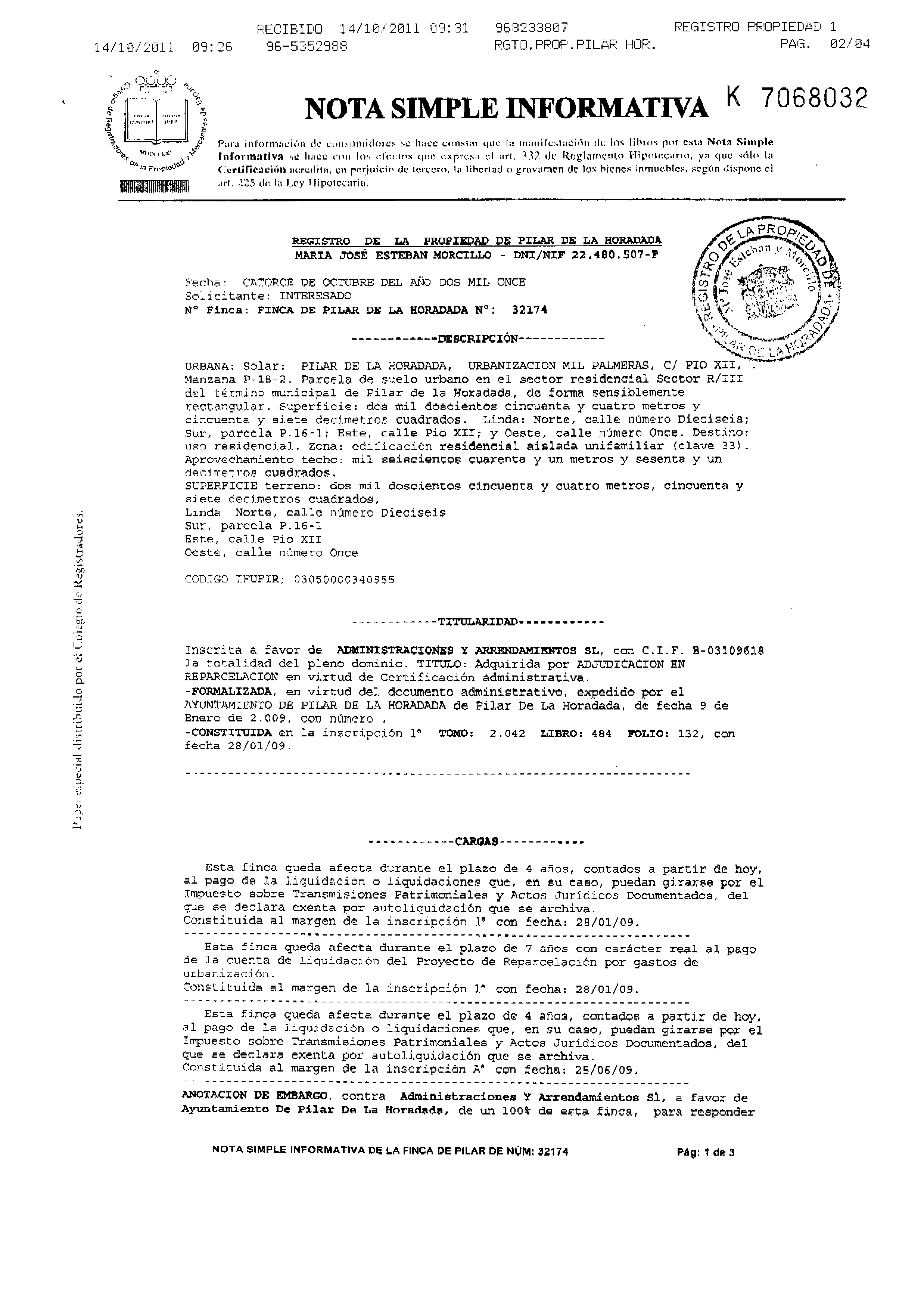 Nota simple P-18 fecha 14/10/2011