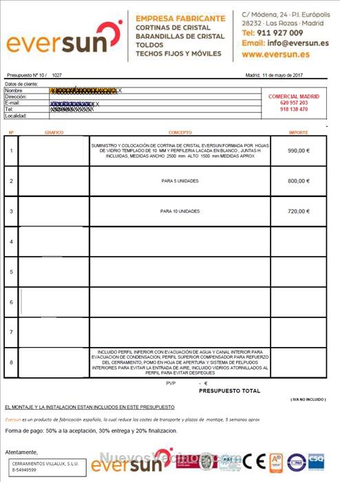 Muchas gracias por tu aporte, la verdad que contra más opciones tengamos mejor, porque desde luego los precios de Lumon no me parecen demasiado asequibles. ¿En cuánto te dijeron que se te quedaba el cerramiento con esta empresa que comentas? ¿Y te comentaron algo de descuentos por grupo?