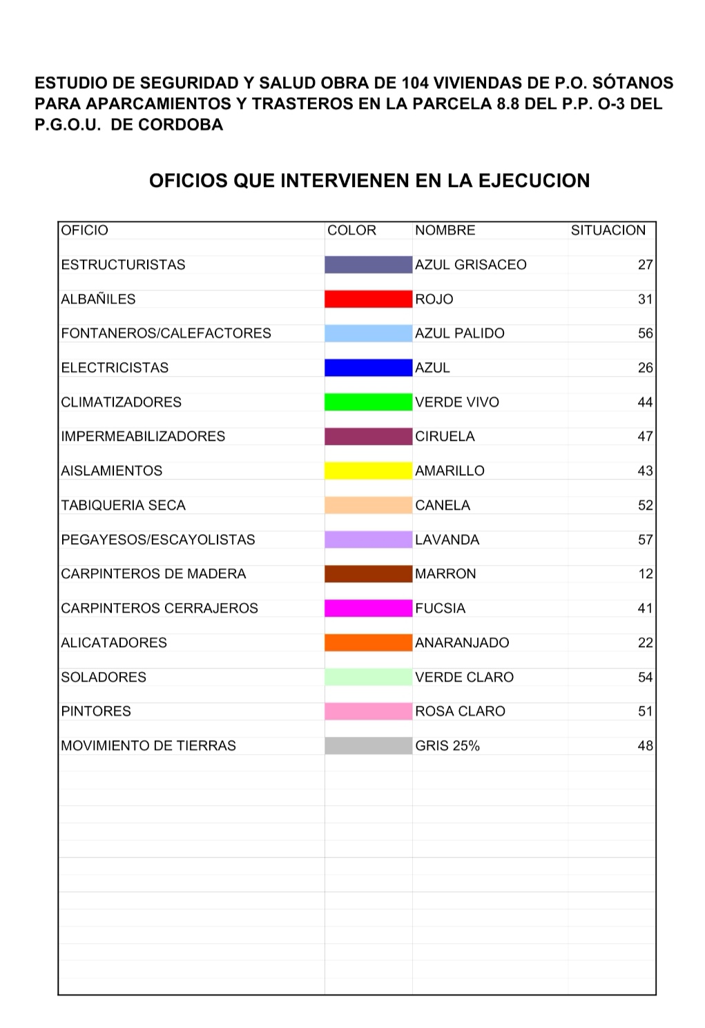 Colores programación de obras