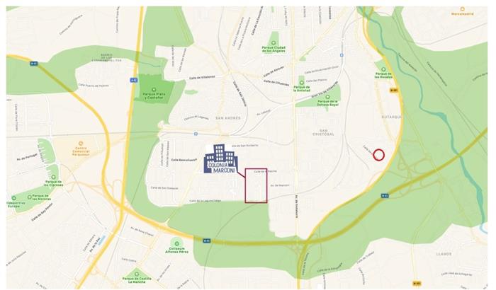 Como os dije, el circulito de la derecha es donde está la urbanización y todo lo verde es la actuación que se va a hacer de plantacion de arboleda y adecuacion de zonas verdes.